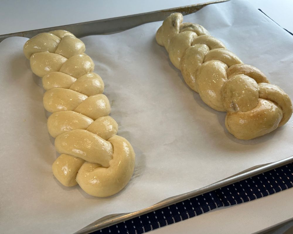 Braids fully proofed and ready to bake.